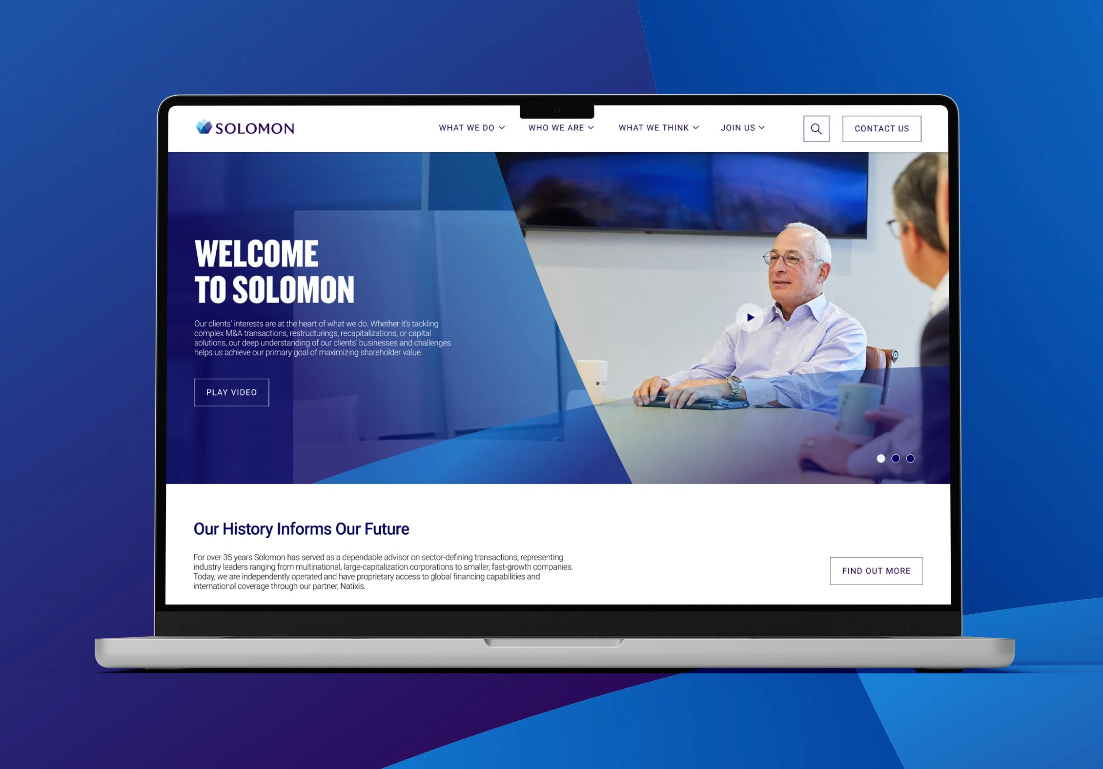 The new brand clearly differentiates Solomon, delivering a cohesive, high-impact experience that reflects the firm’s values, people, and leadership in the market.